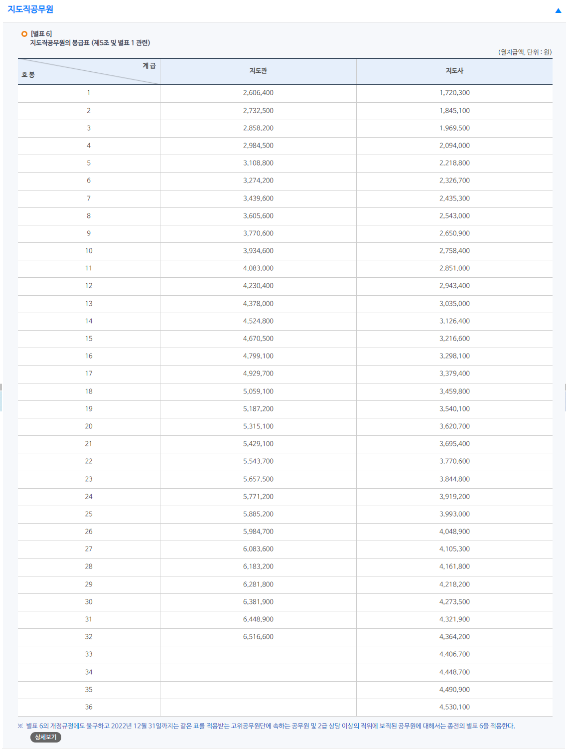 | 2022 공무원 봉급표 - 공안업무 등에 종사하는 공무원의 봉급표 (0) | 2022.01.08 |
